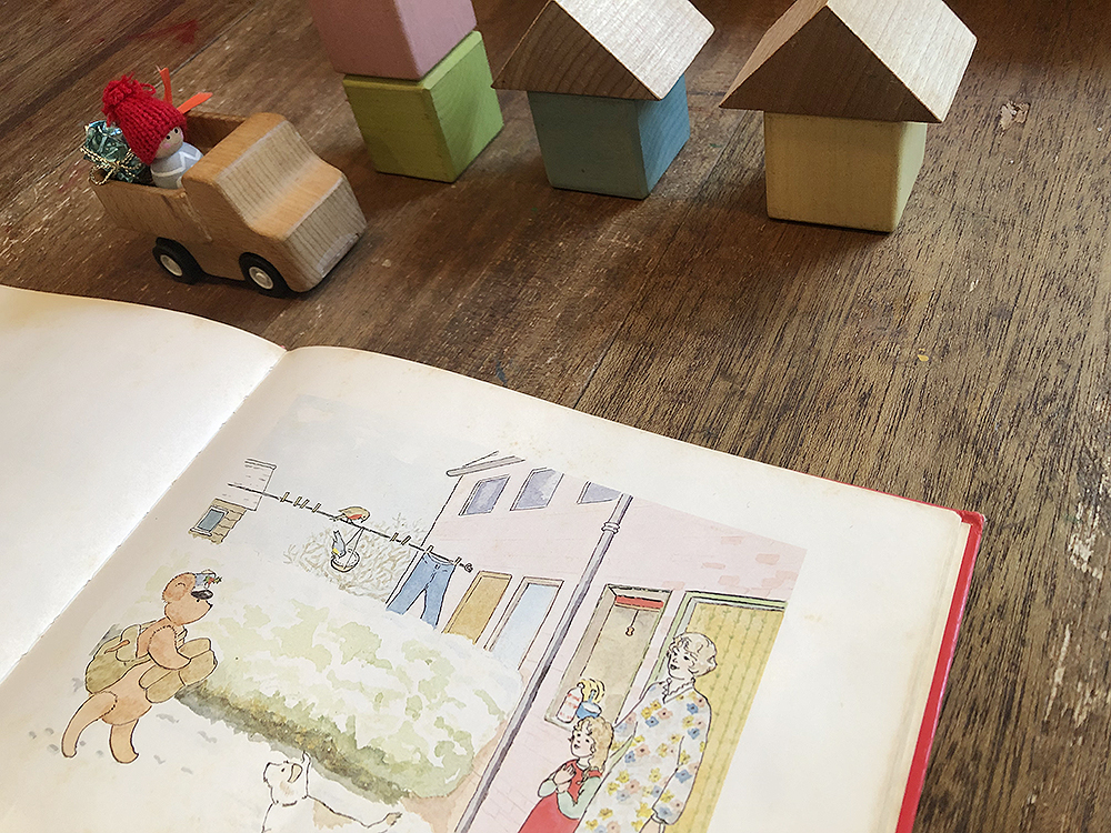 駅にこづつみを受け取りにいき、郵便局で手紙やこづつみにはんこをおし、やぶけかかった包みをきれいになおし、 配達に。勤勉で丁寧な仕事をするくまさんは、贈り物を届ける先々で、あたたかく迎えられます。