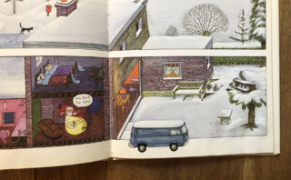 こたつまわりの大晦日の家族の光景を描いた絵本「こたつ」。このこたつが、今の我が家とほとんど同じサイズです。